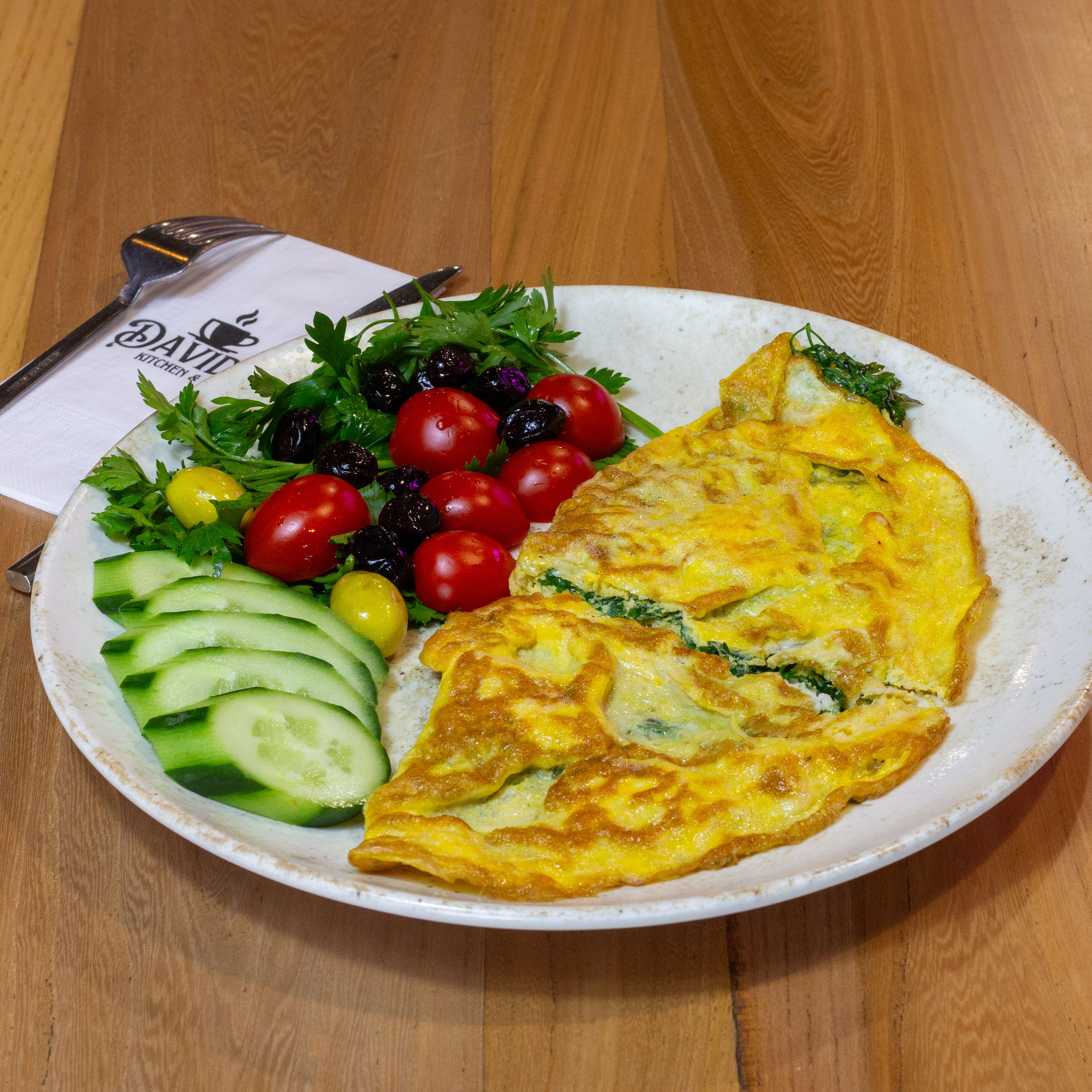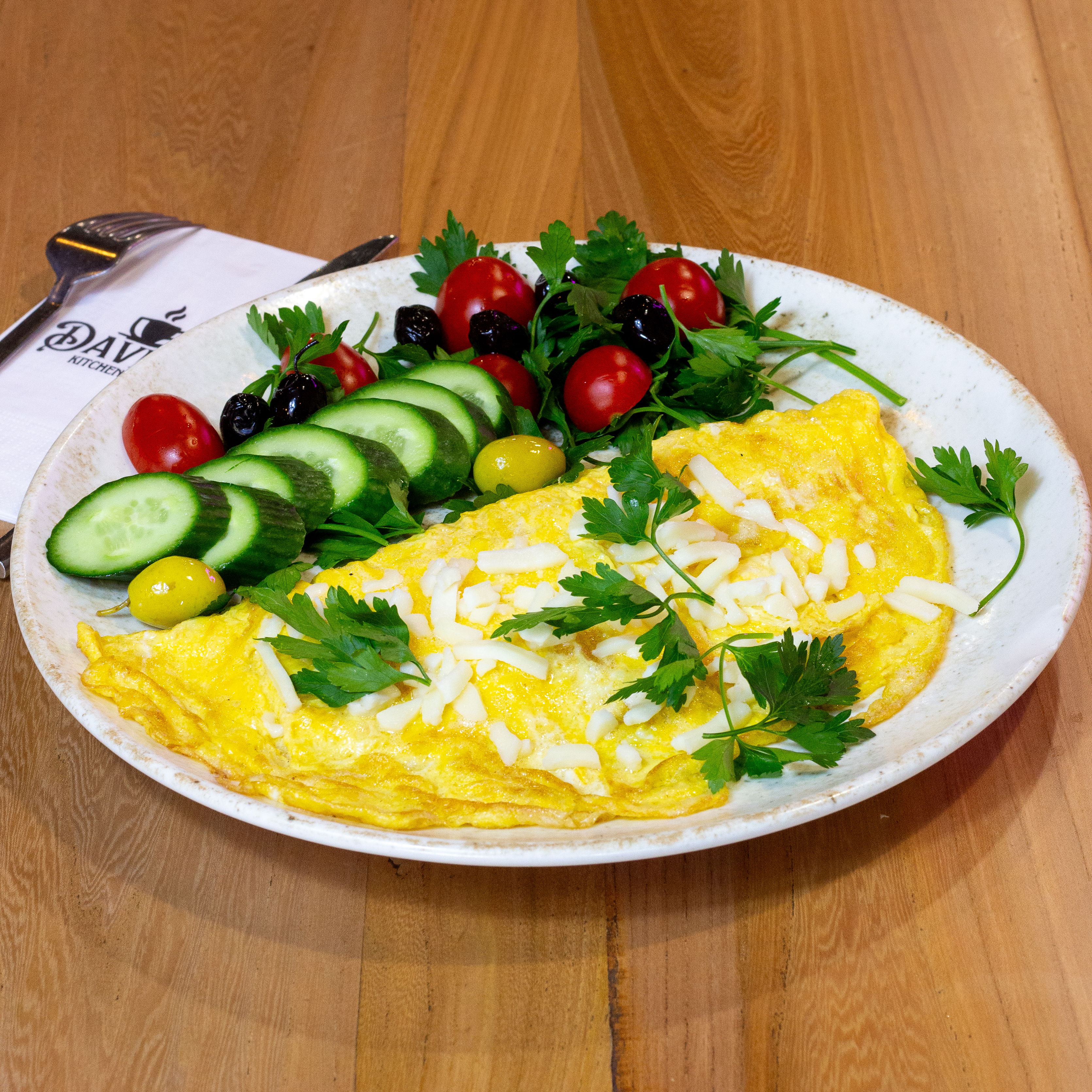 Domates, salatalık ve zeytin ile servis edilir