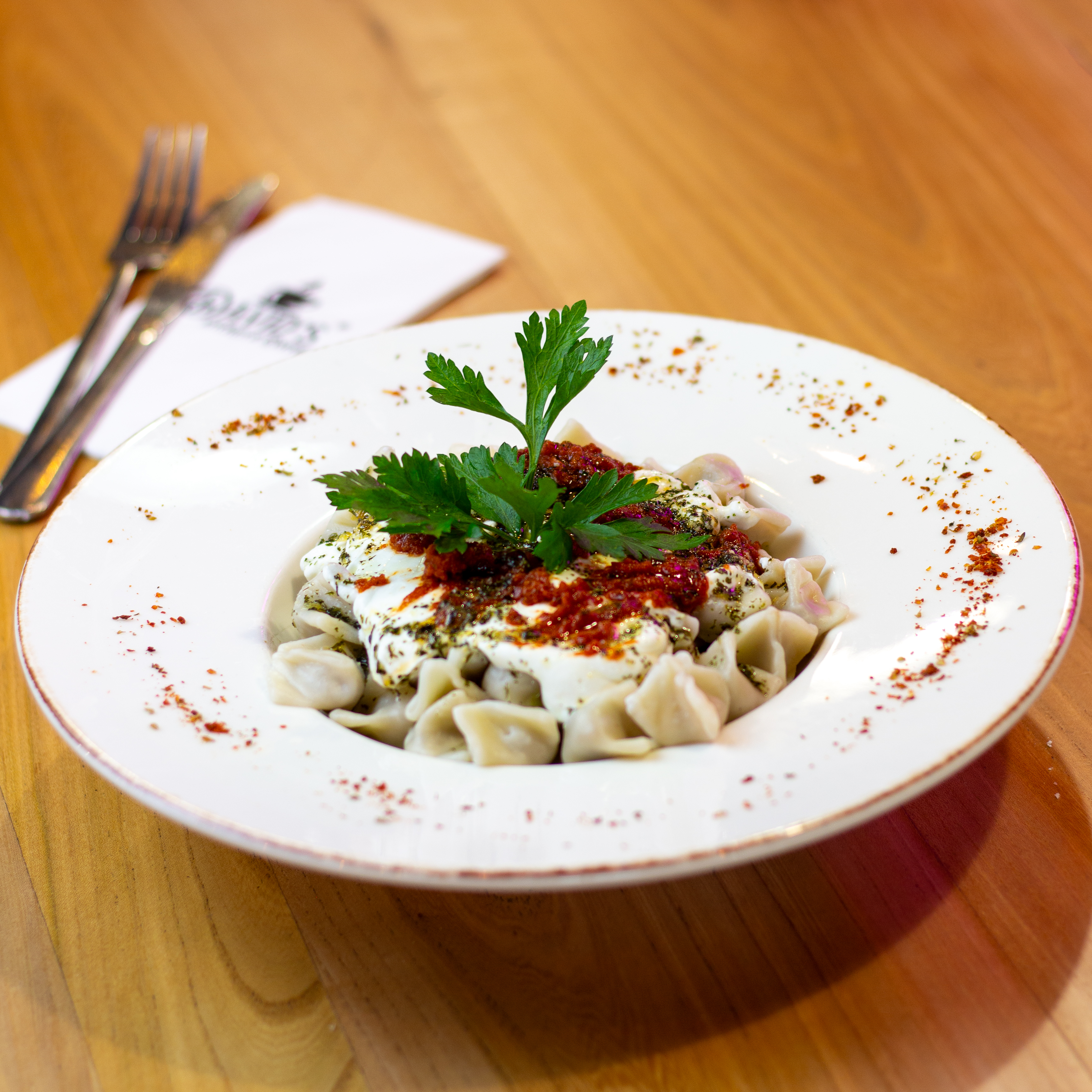 Yoğurt ve tereyağ sos ile servis edilir.