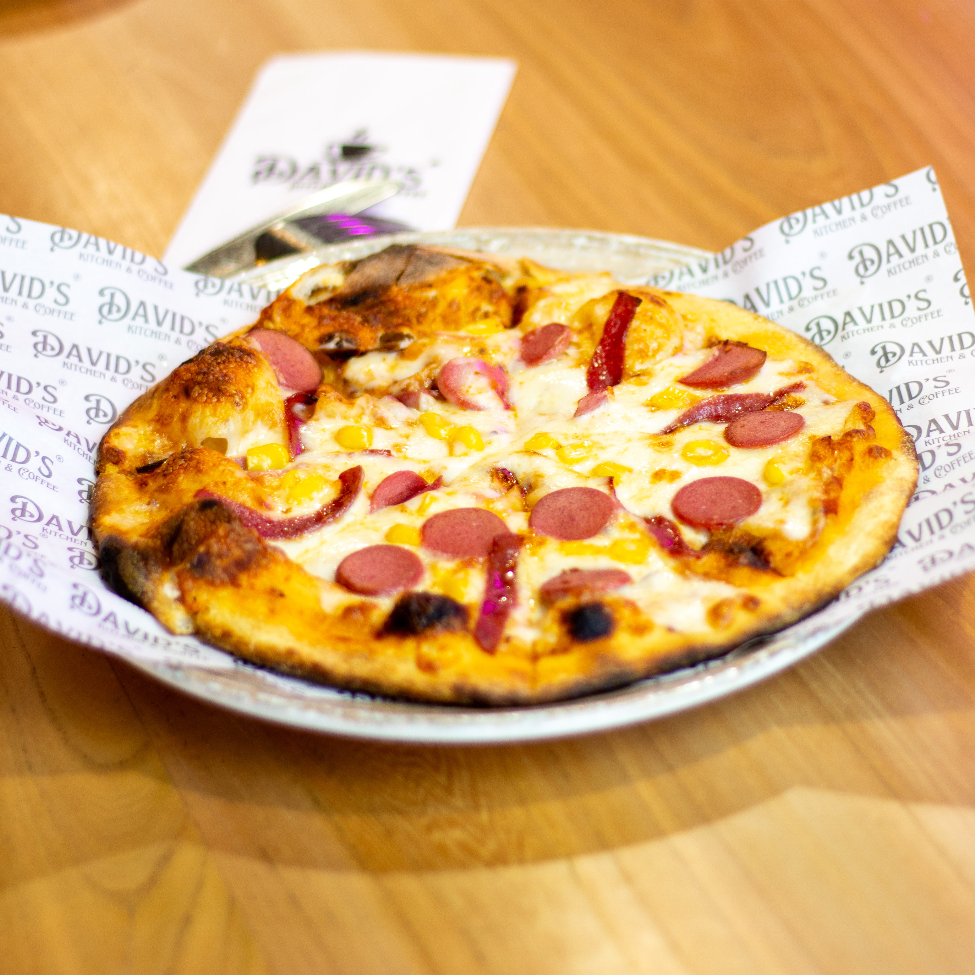 Domates sos, salam, sosis, mozarella ve mısır.