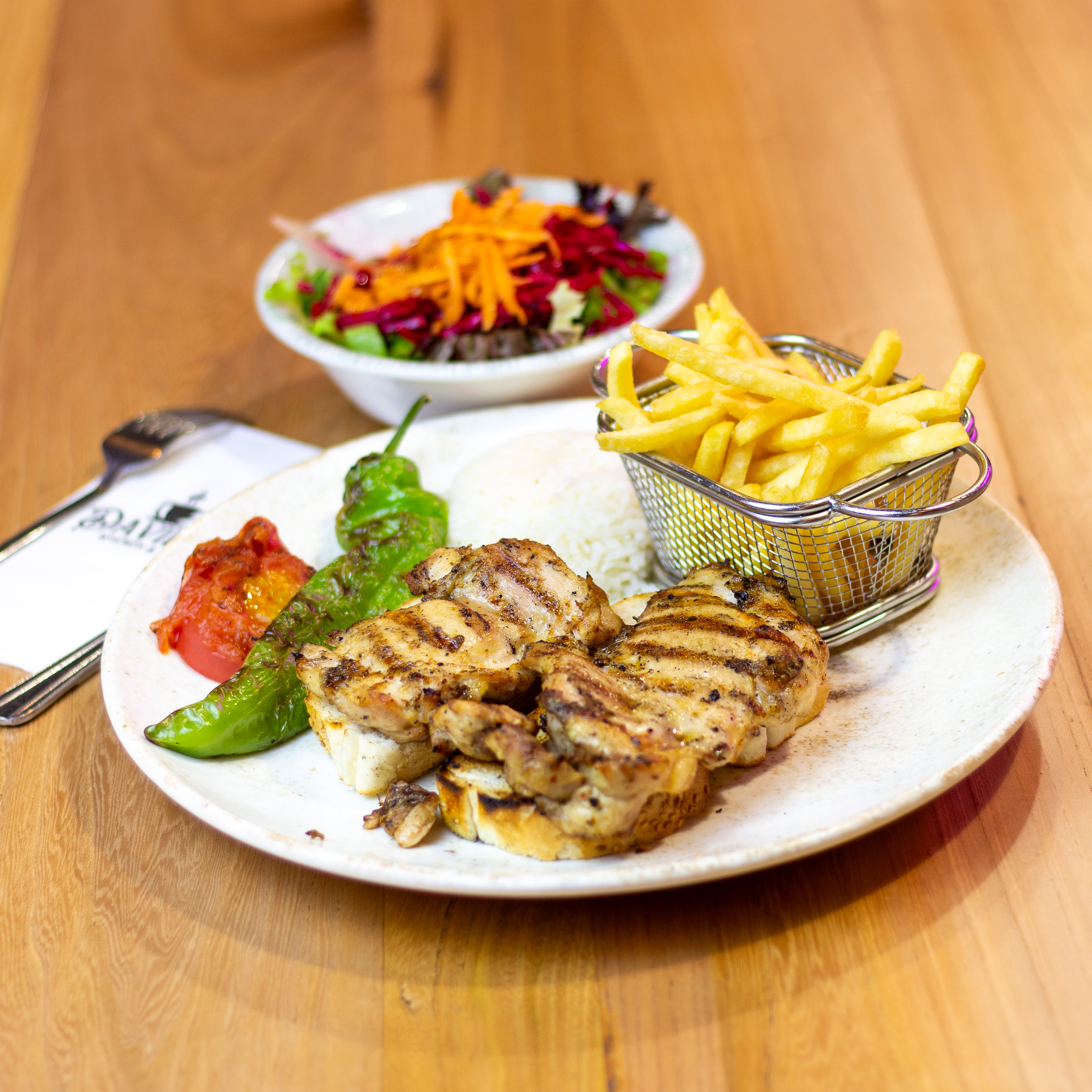 200 gr. Tavuk Bonfile, patates kızartması ve pirinç pilavı