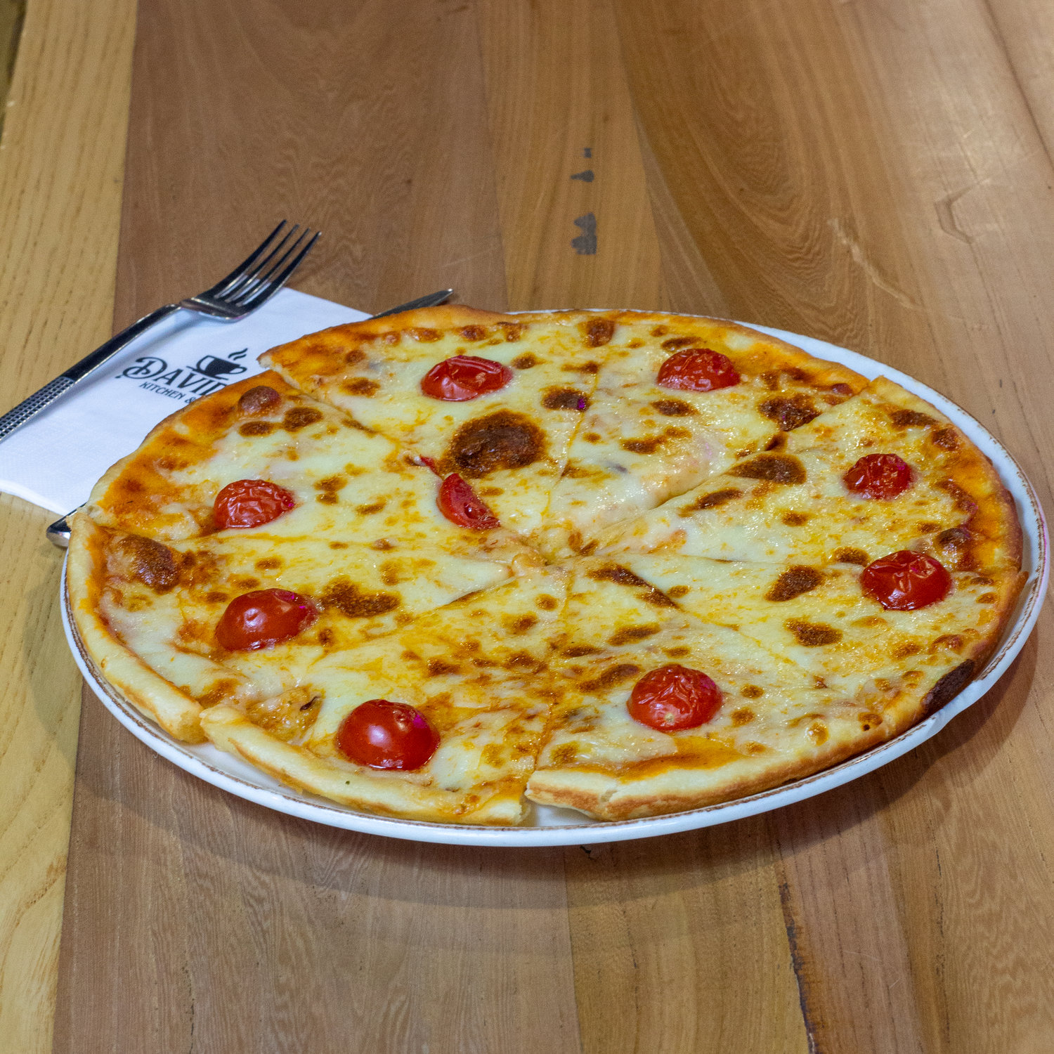 Mozzarella,donates sos,cherry domates, sucuk,mantar,siyah zeytin ve renkli biber